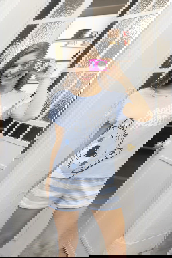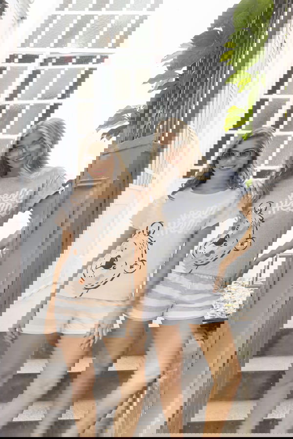 Pijama de algodón. Conjunto de remera y shorts.